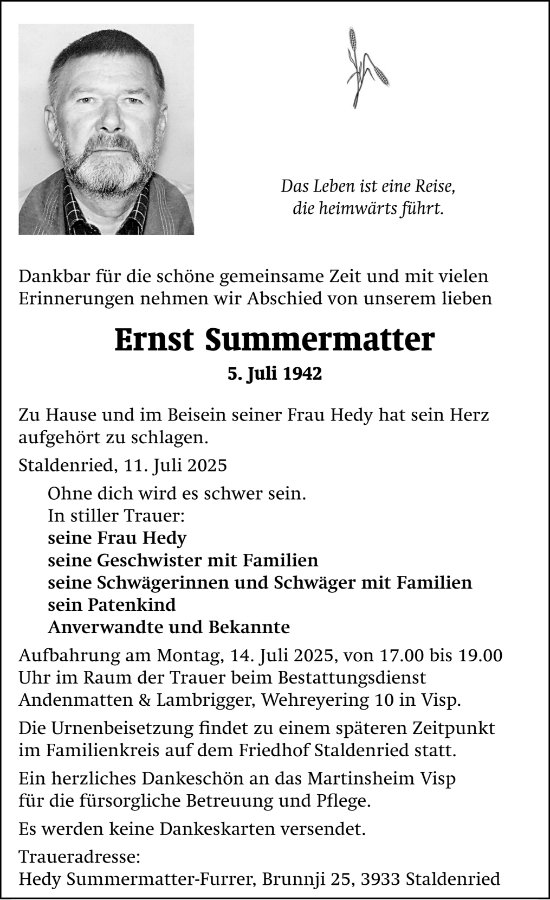 Lesen Sie hier die Anzeigen und Trauerpost!
