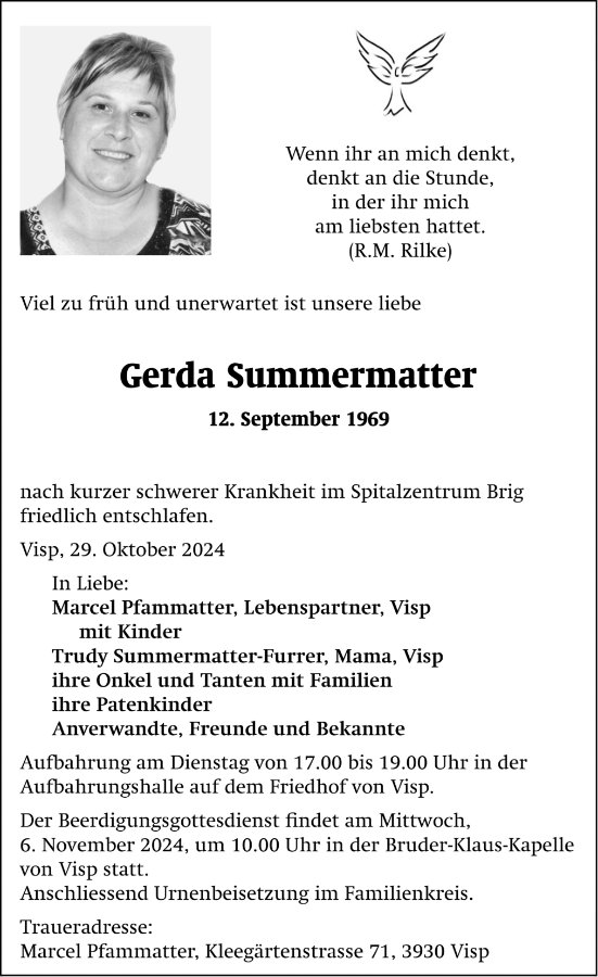 Beerdigungsgottesdienst:, Bruder-Klaus-Kapelle Visp