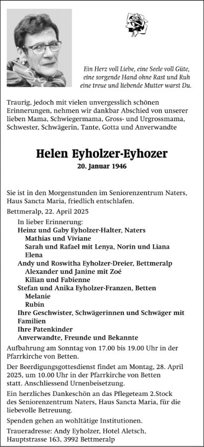 wir wünschen Ihnen für die kommende Zeit viel Kraft und dass es Ihnen gelingt, dankbar auf die positiven Erinnerungen zurückzublicken. Diese Gedenkseite möge Ihnen dabei helfen, Ihre Trauer zu teilen und das Andenken gemeinsam wachzuhalten.