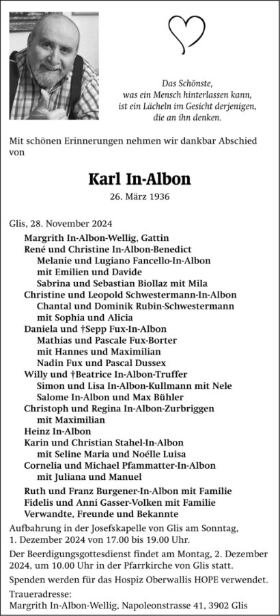 wir wünschen Ihnen für die kommende Zeit viel Kraft und dass es Ihnen gelingt, dankbar auf die positiven Erinnerungen zurückzublicken. Diese Gedenkseite möge Ihnen dabei helfen, Ihre Trauer zu teilen und das Andenken gemeinsam wachzuhalten.