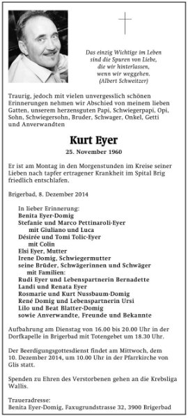 geboren am 25. November 1960 gestorben am 8. Dezember 2014
