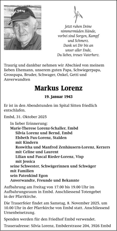 Andenmatten & Lambrigger Bestattungen entzündete diese Kerze am 6. November 2025 um 11.09 Uhr
