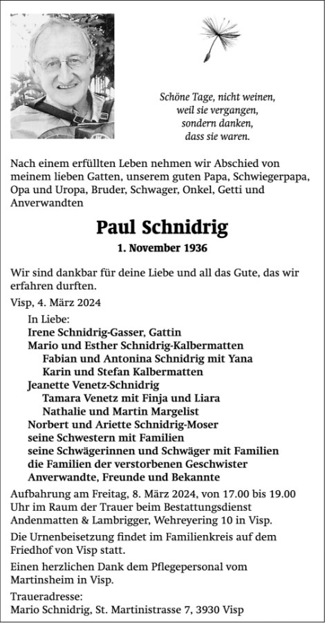geboren am 1. November 1936 gestorben am 4. März 2024