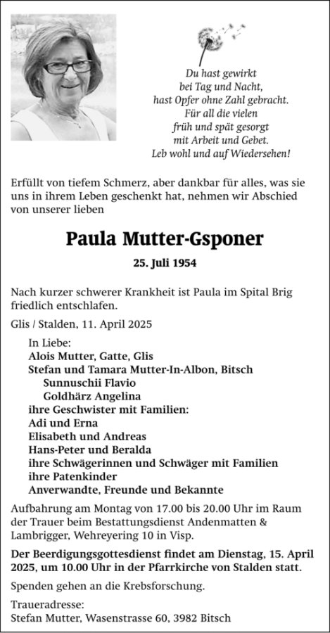 geboren am 25. Juli 1954 gestorben am 11. April 2025