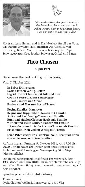 Alles verändert sich, aber dahinter ruht einEwiges.GoetheLieber Theo, vier Jahre sind vergangen und Niemand geht so ganz ...Wir vermissen dich!Deine FreundeKarin und Heinz