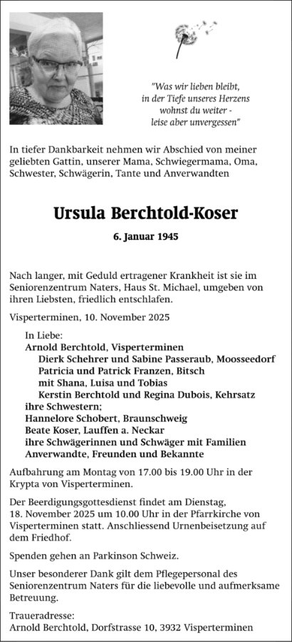 wir wünschen Ihnen für die kommende Zeit viel Kraft und dass es Ihnen gelingt, dankbar auf die positiven Erinnerungen zurückzublicken. Diese Gedenkseite möge Ihnen dabei helfen, Ihre Trauer zu teilen und das Andenken gemeinsam wachzuhalten.